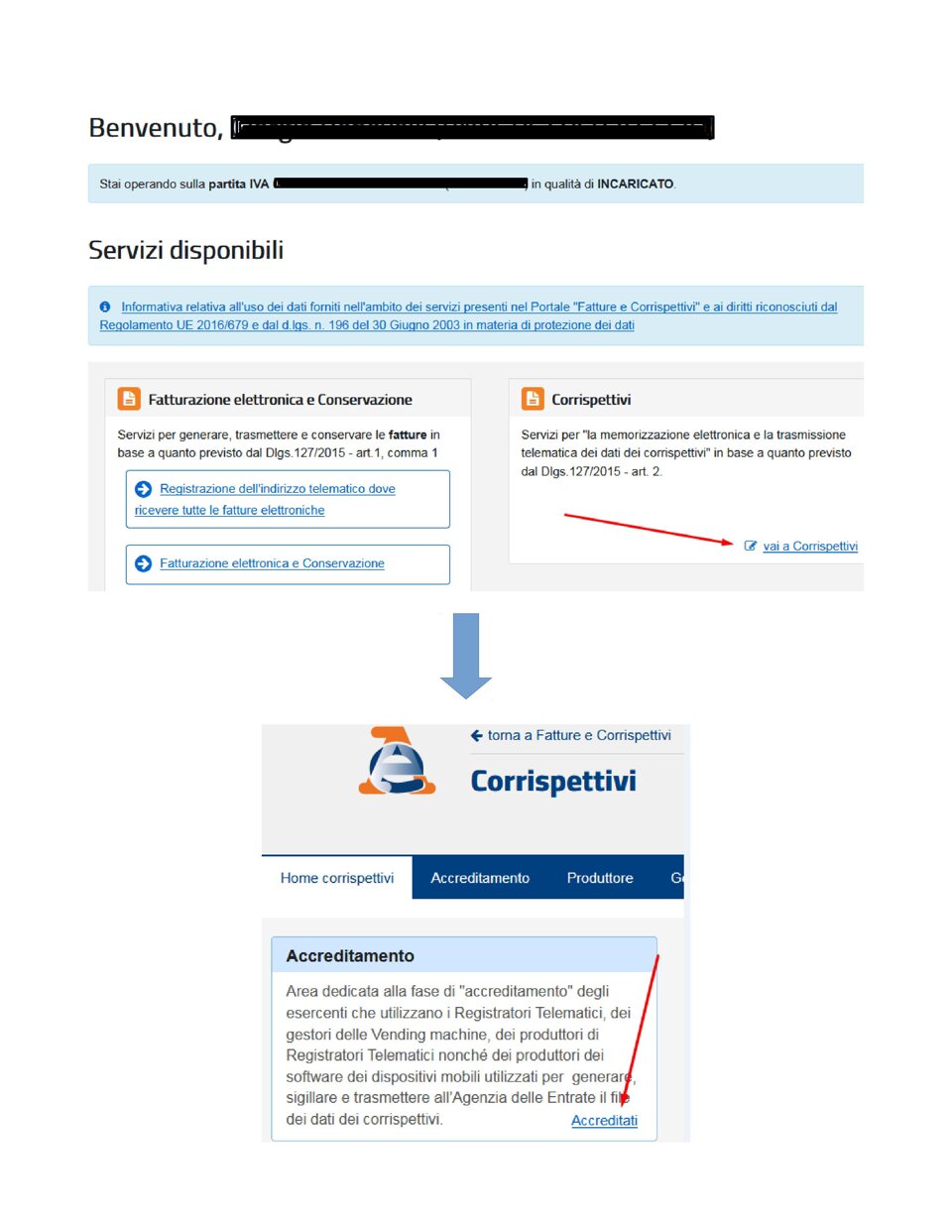 NB: Per rendere operativo un registratore telematico è necessario che l’esercente sia accreditato tramite il portale FATTURE & CORRISPETTIVI dell’Agenzia delle Entrate: https://ivaservizi.agenziaentrate.gov.it/portale/